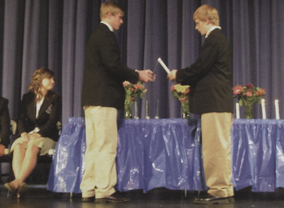 Seven blue candles standing aside seven white candles on the stage table are then lit, one for each current student body officer. They represent the lights of all the students at Bingham High that have been shining throughout the year as well as the lights and traditions of all the Bingham Miners who came before them. Historically candle light has been used to represent some new truth or tradition one has learned or come to appreciate, and now it is time for the current student body officers who have represented everyone throughout the past year to pass on their lights to next year’s officers who will then become the custodians of the school’s traditions for the upcoming year.